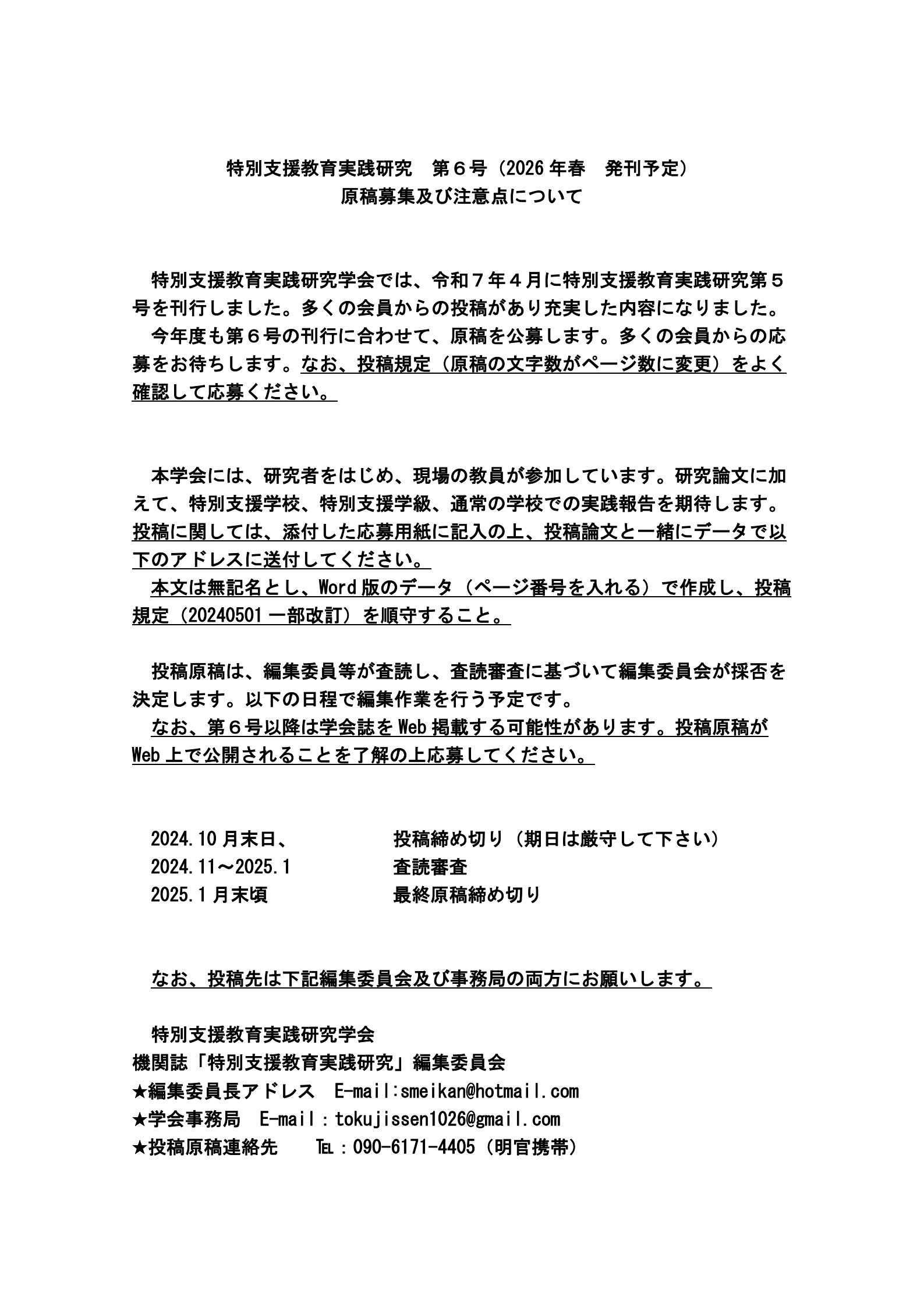 今年度も第6号の刊行に合わせて、原稿を公募します。多くの会員からの応募をお待ちします。なお、投稿規定(原稿の文字数がページ数に変更)をよく確認して応募ください。